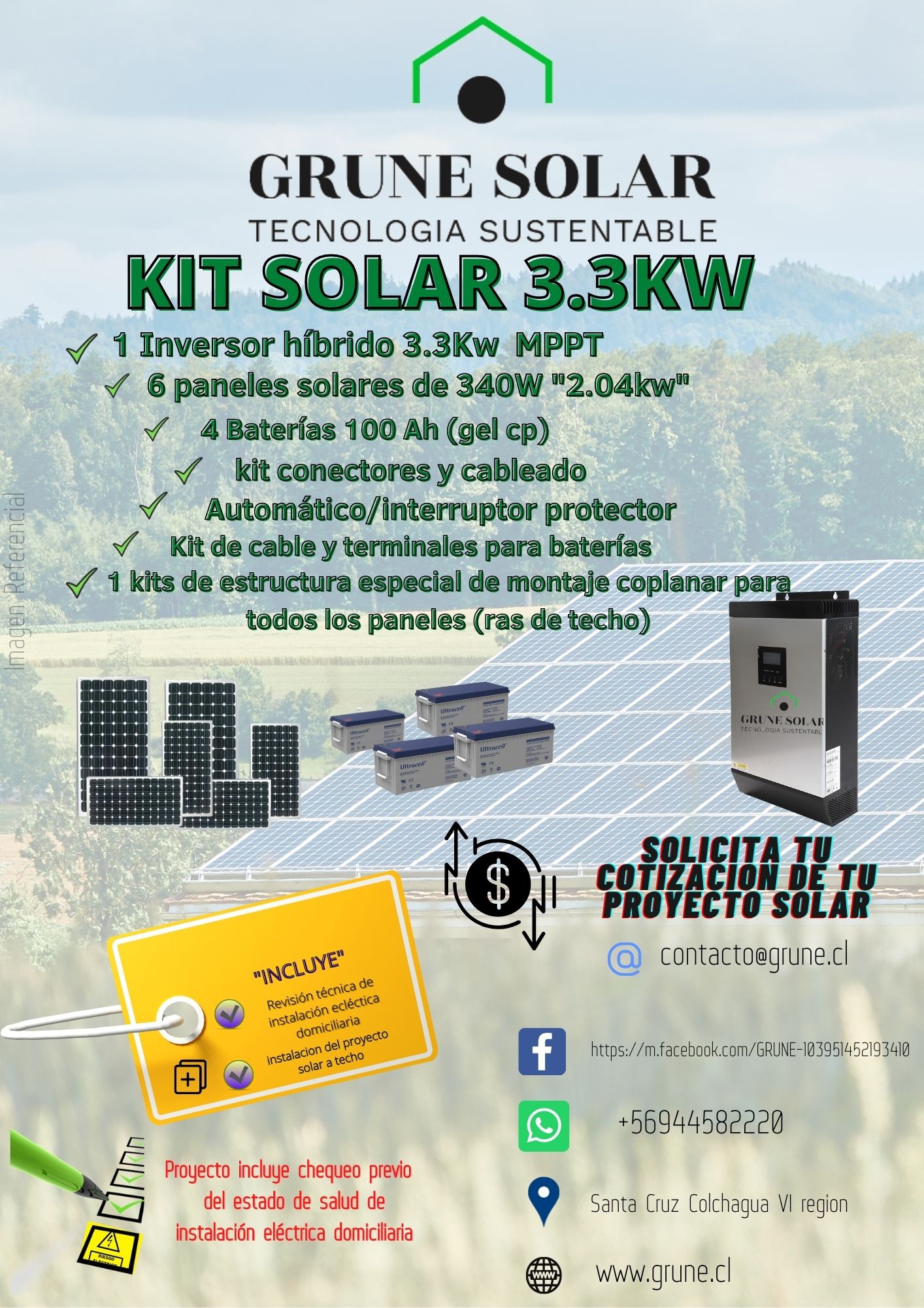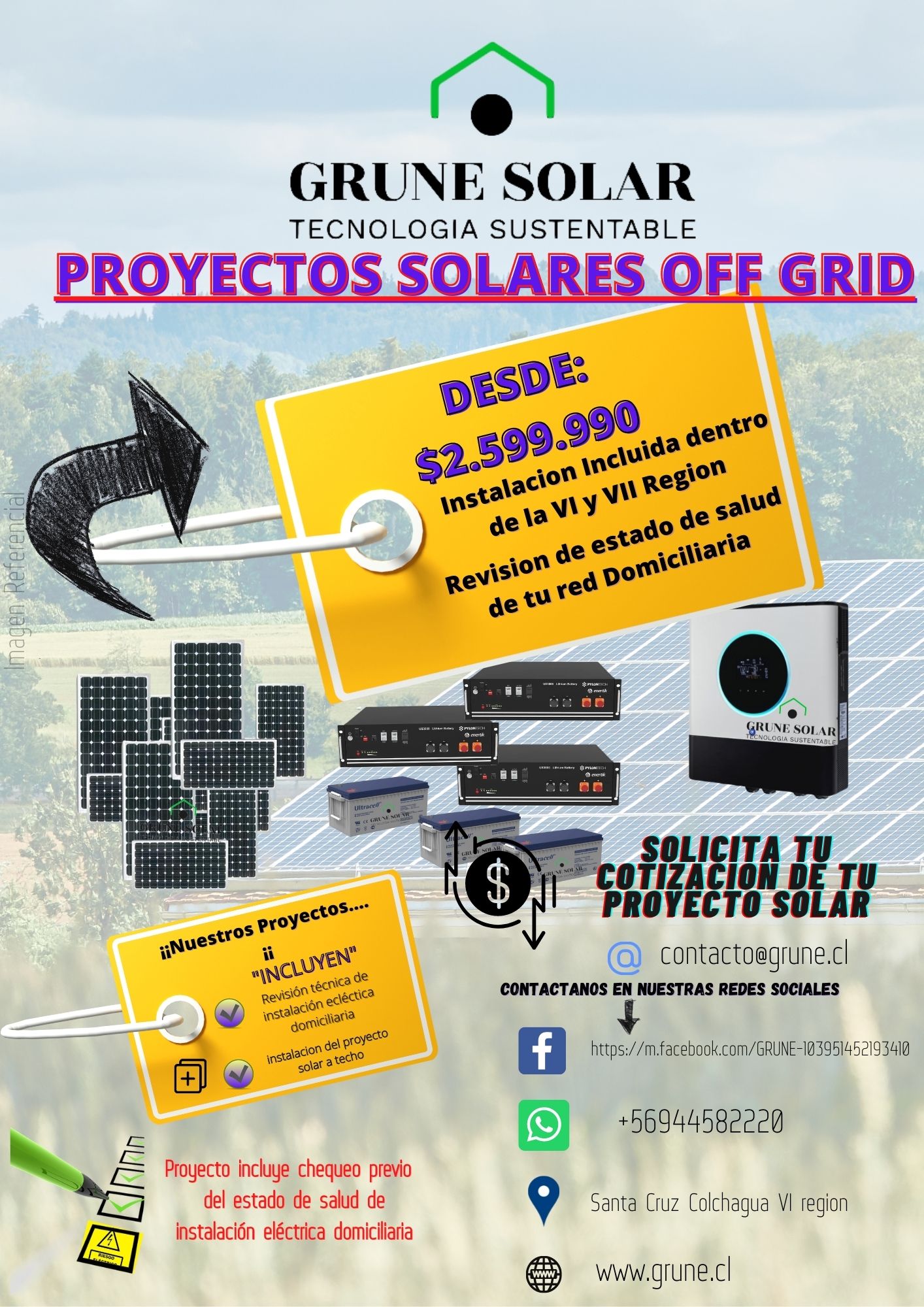 Nuestro compromiso es entregar alternativas de ahorro energético y cuidado del medioambiente aprovechando la primera fuente energética renovable natural. El Sol, a través de la implementación de paneles solares para cubrir las necesidades eléctricas de su hogar o para uso de regadío agrícola. Ofrecemos asesorías, variedad de baterías como, ( Gel de ciclo profundo y Litio).